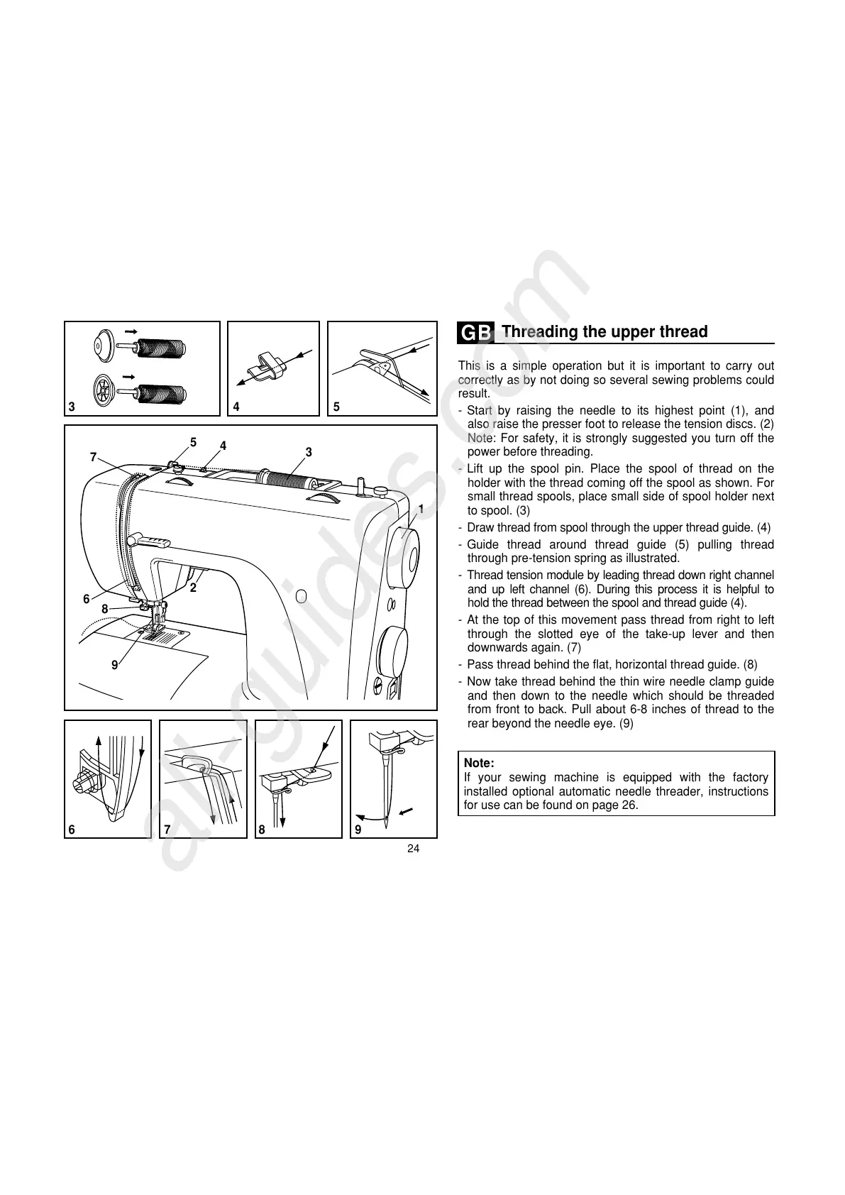 - Pass thread behind the flat, horizontal thread guide. (8)