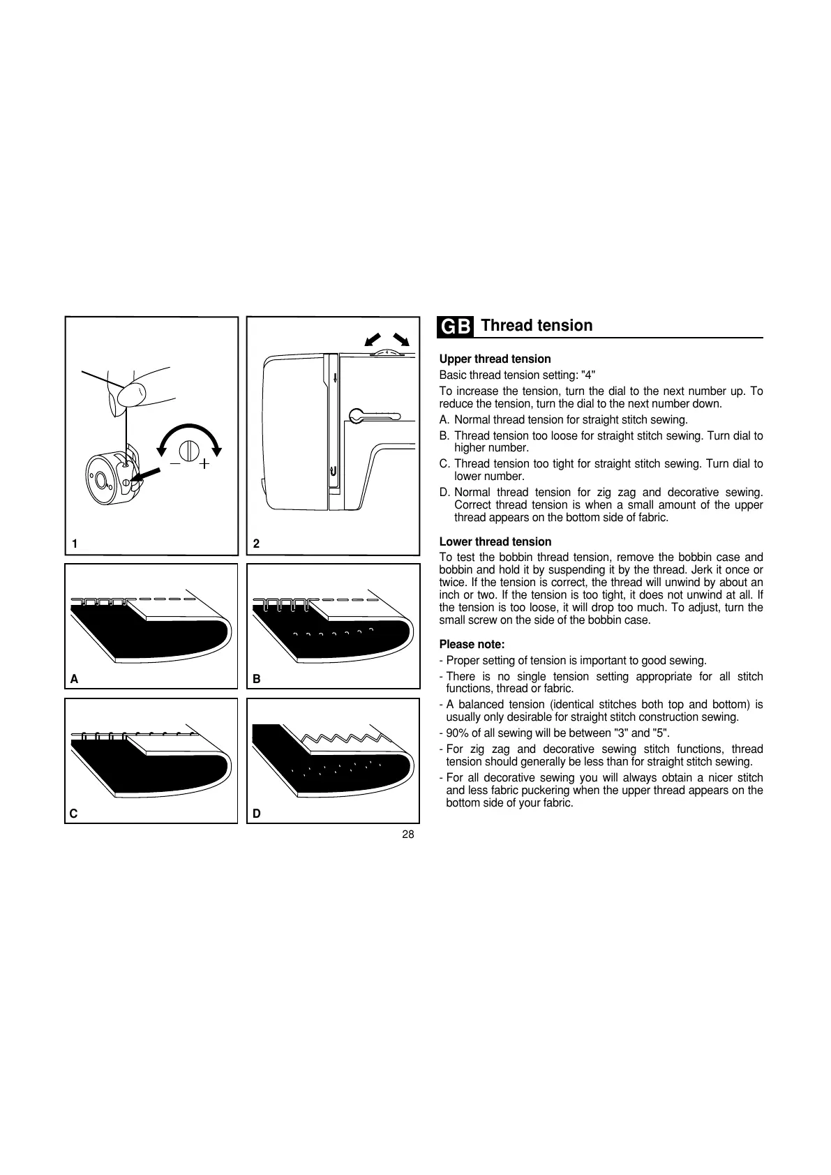 B. Thread tension too loose for straight stitch sewing. Turn dial to