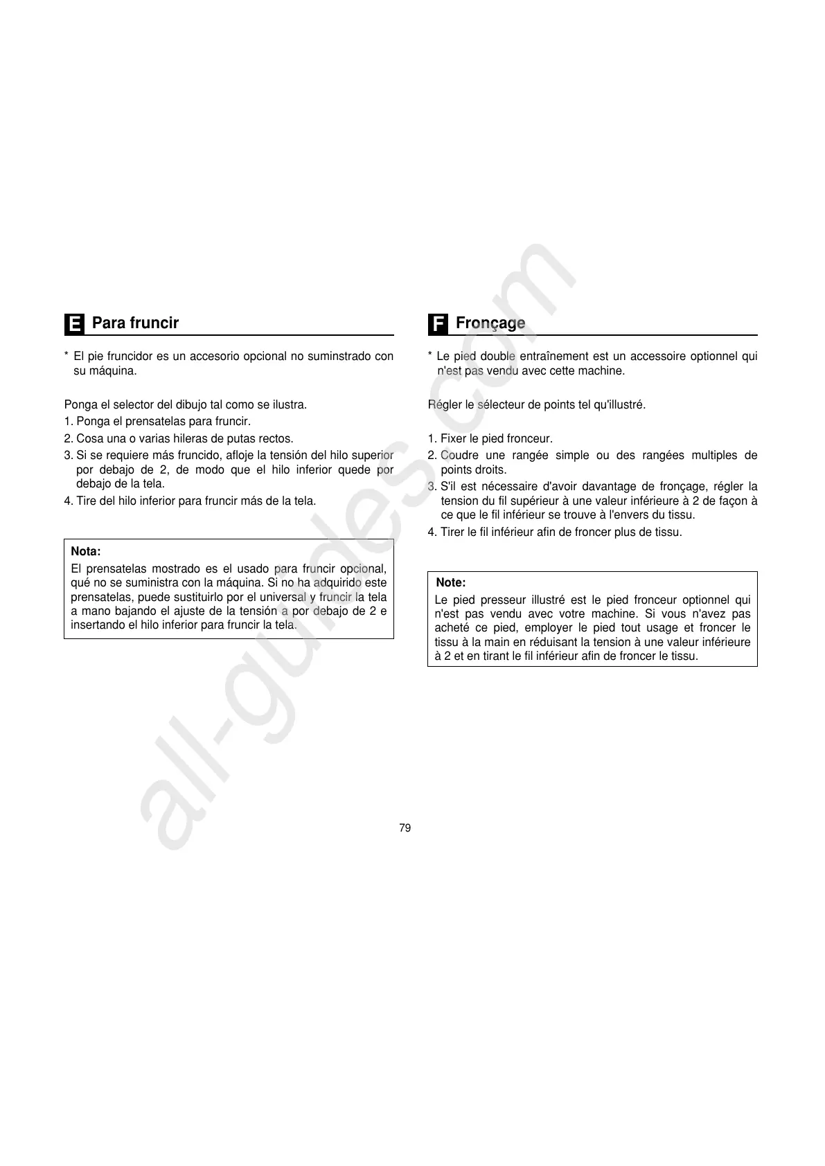 * El pie fruncidor es un accesorio opcional no suminstrado con