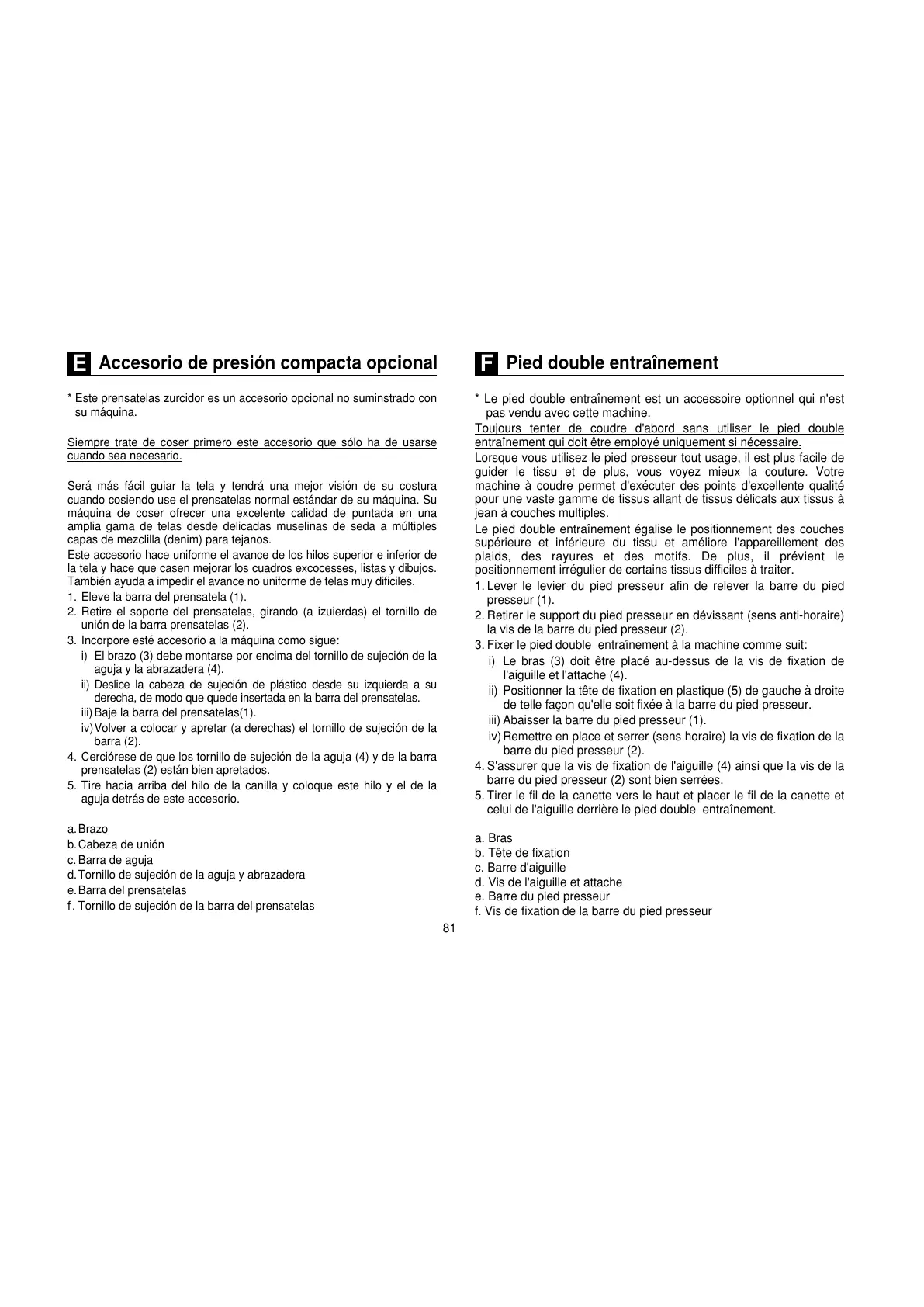 * Le pied double entraînement est un accessoire optionnel qui n'est