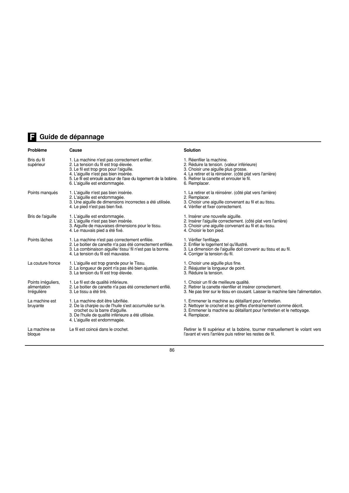 3. Aiguille de mauvaises dimensions pour le tissu.