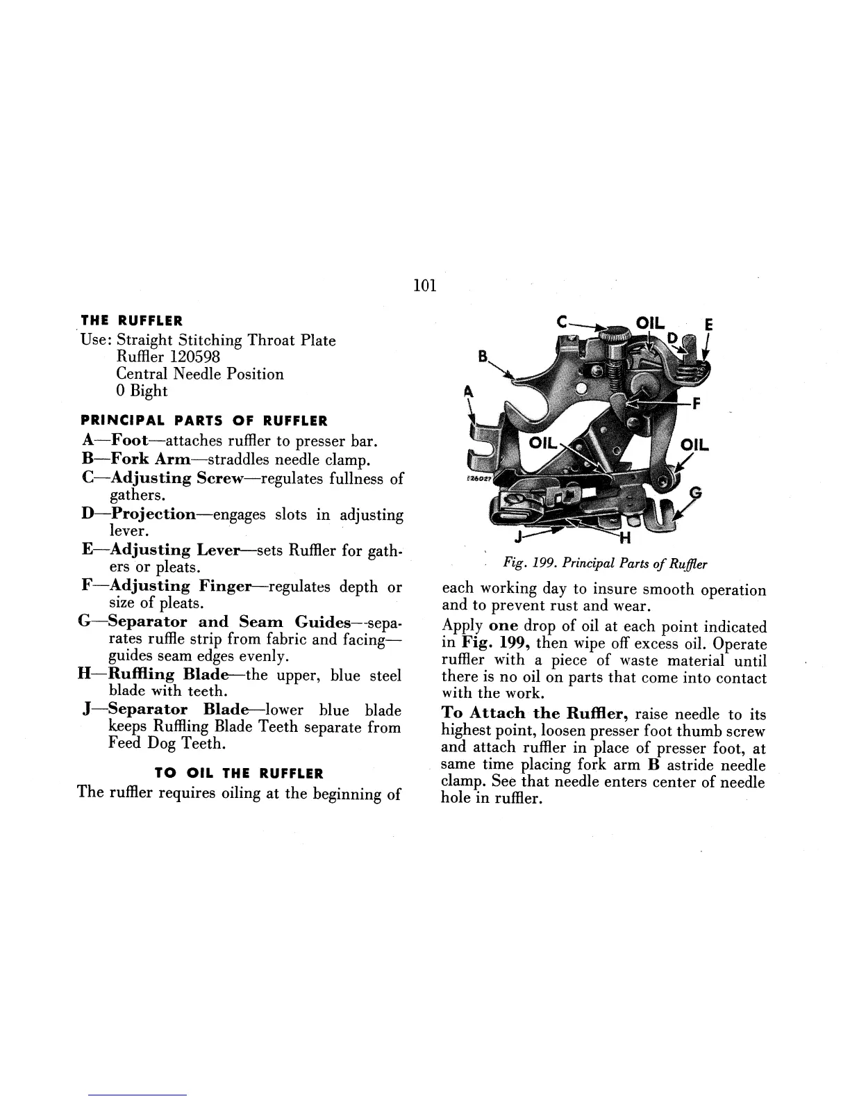 Singer 319 - The Ruffler Attachment; Principal Parts of the Ruffler; Oiling the Ruffler Attachment; Attaching the Ruffler to the Machine