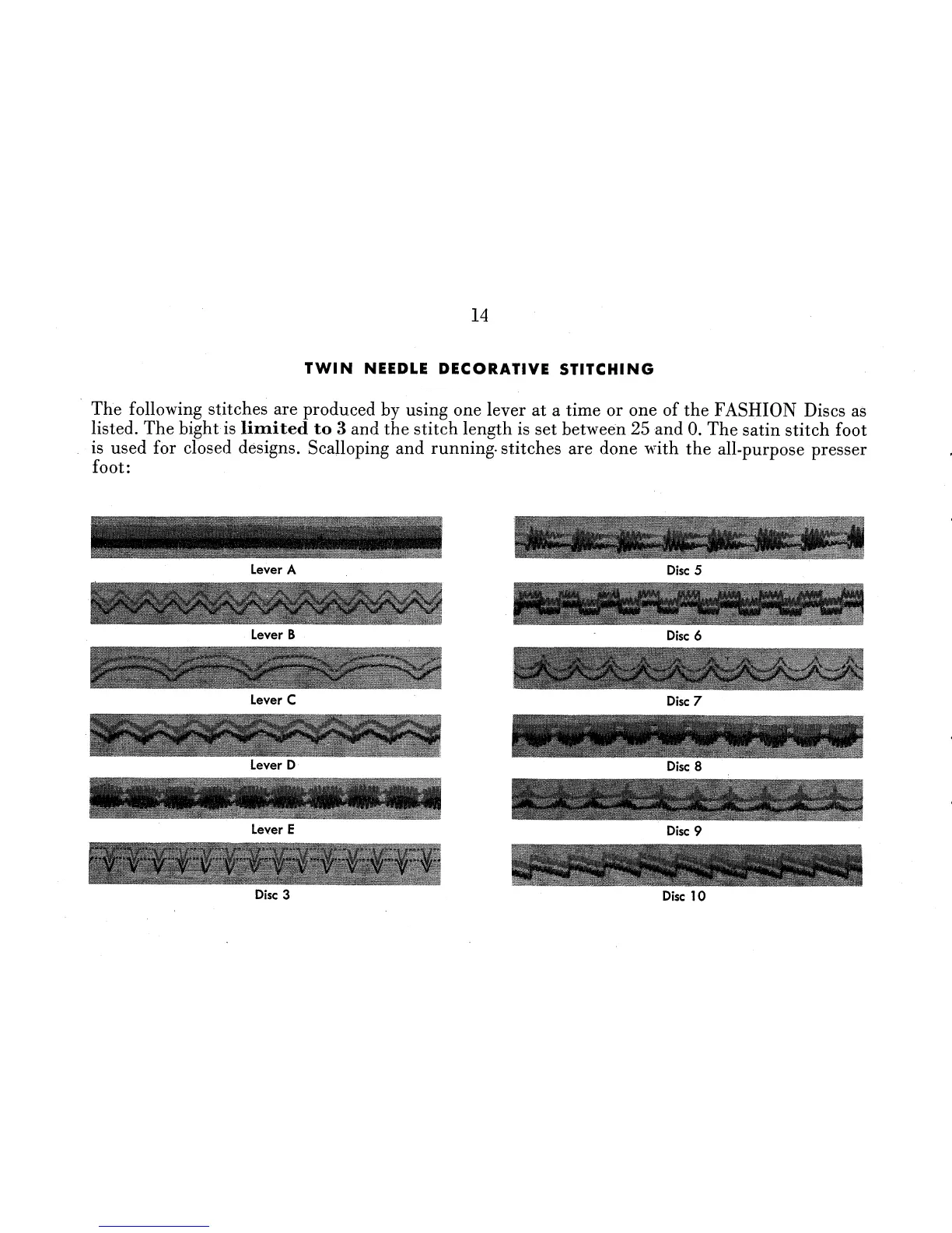 Singer 319 - Twin Needle Decorative Stitching; Single Lever Twin Needle Stitches