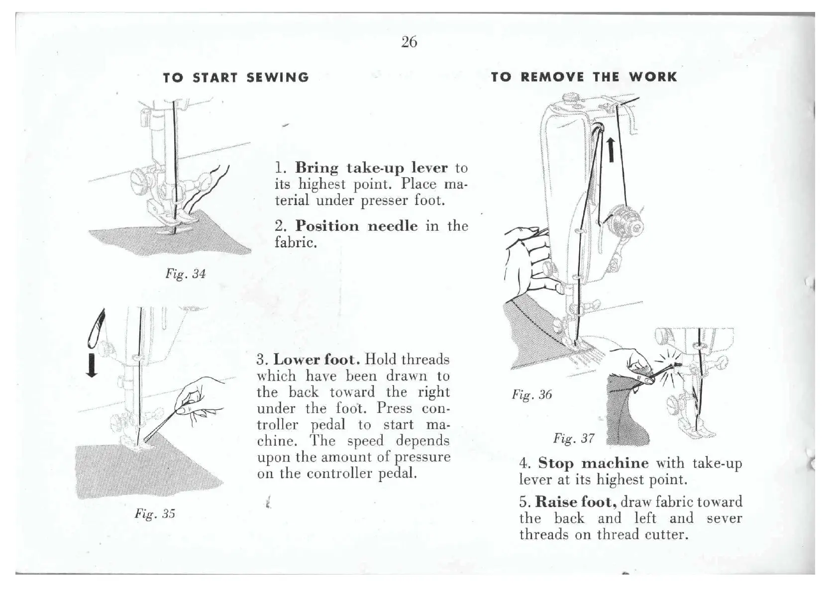 Singer 319K - To Start Sewing; To Remove the Work