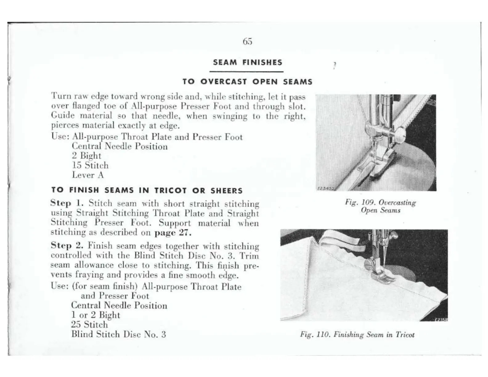 Singer 319K - Seam Finishes; To Overcast Open Seams; To Finish Seams in Tricot or Sheers