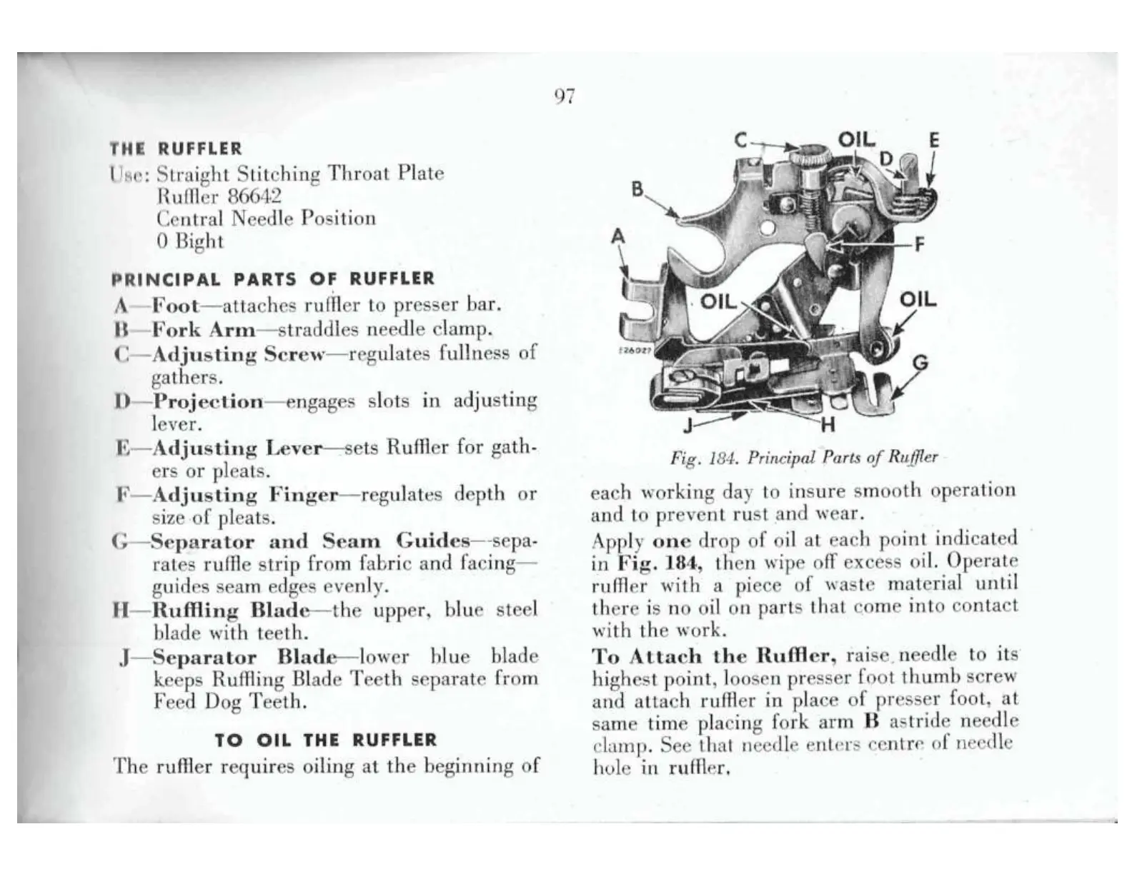 Singer 319K - The Ruffler and Its Principal Parts; To Oil the Ruffler