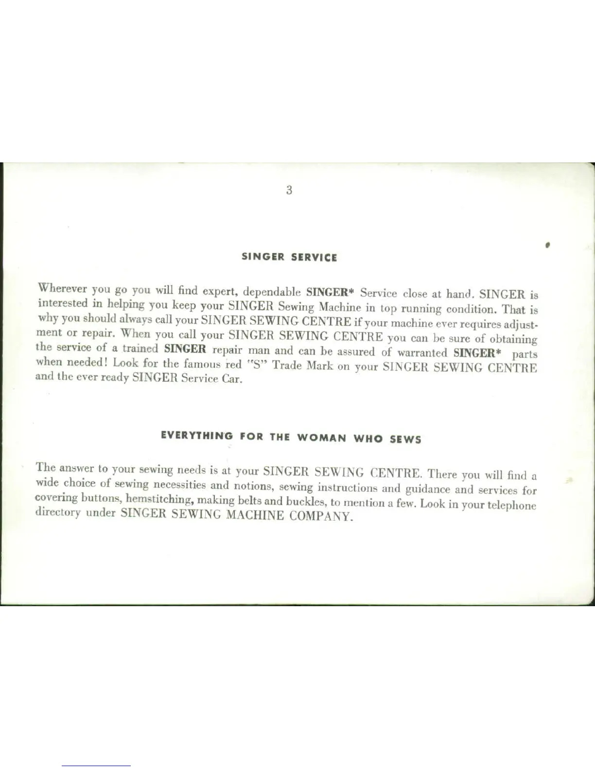 Singer 320K2 - Singer Service and Support; Singer Service Network; Sewing Necessities and Notions