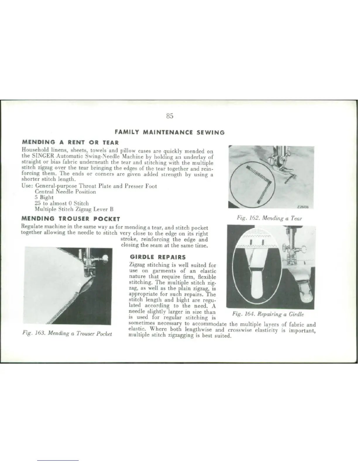 Singer 320K2 - Family Sewing and Maintenance; Mending Tears and Rents; Mending Trouser Pockets; Girdle Repairs