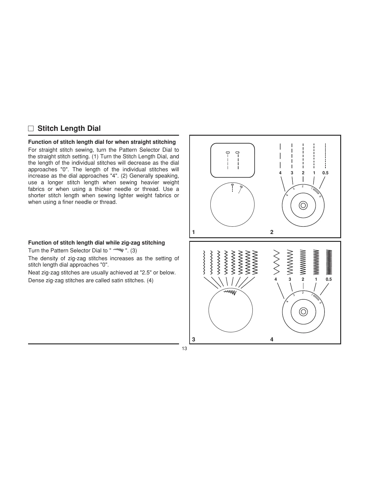 the straight stitch setting. (1) Turn the Stitch Length Dial, and