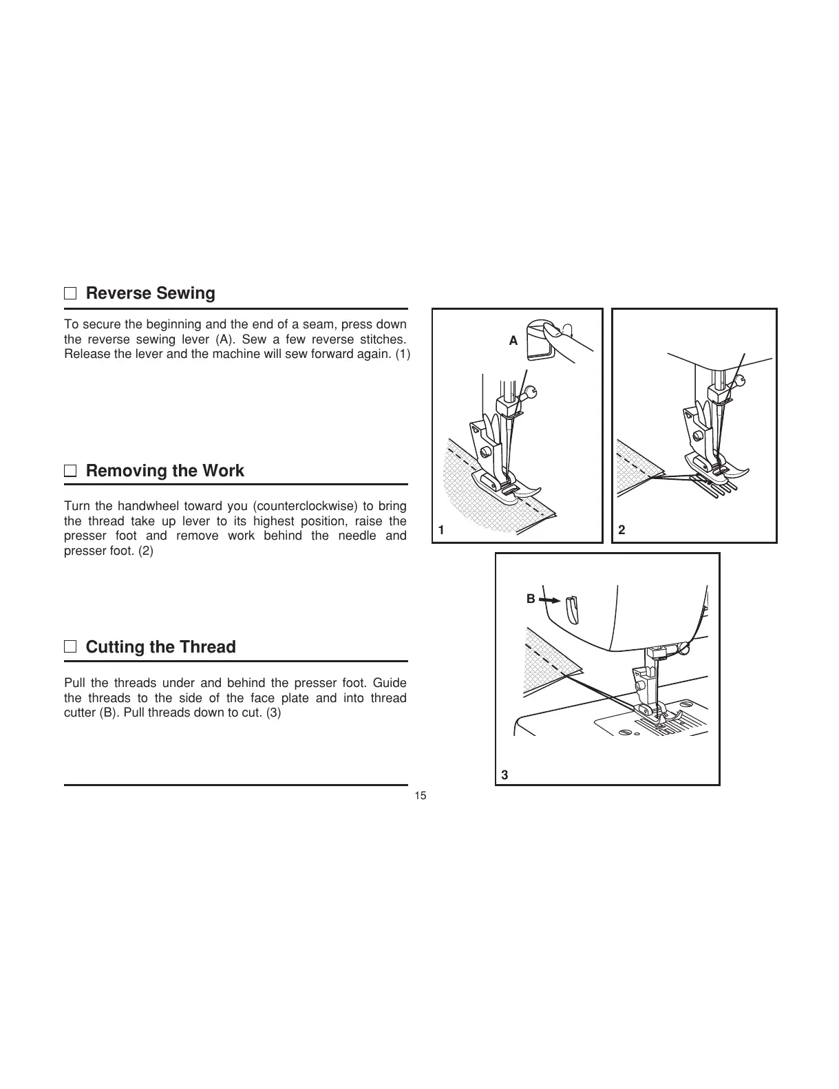 the reverse sewing lever (A). Sew a few reverse stitches.