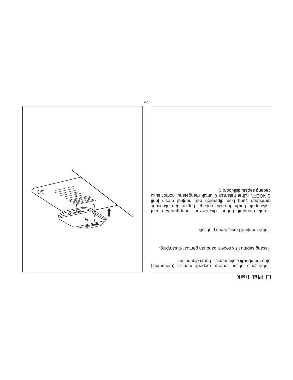 Untuk menjahit biasa, lepas plat tisik.