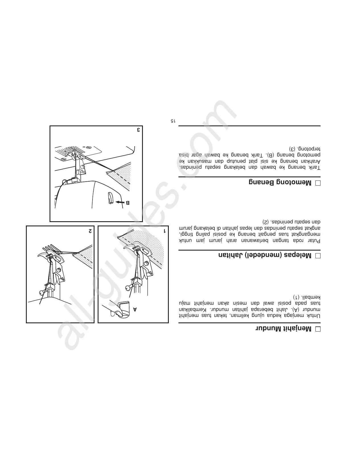 pemotong benang (B). Tarik benang ke bawah agar bisa