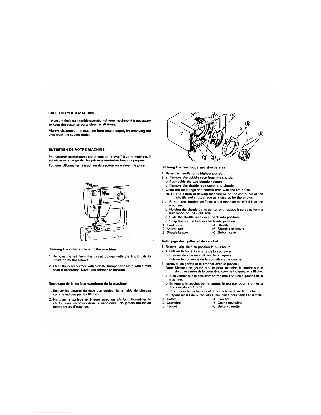 Singer 324 - Machine Care and Maintenance; Cleaning Feed Dogs and Shuttle Area; Cleaning Outer Surface