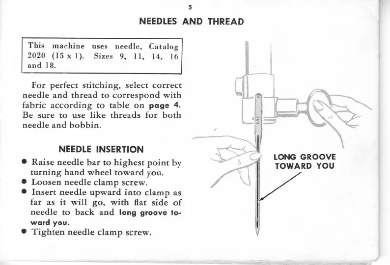 Singer 327 - Needles and Thread Selection; Needle Insertion Procedure