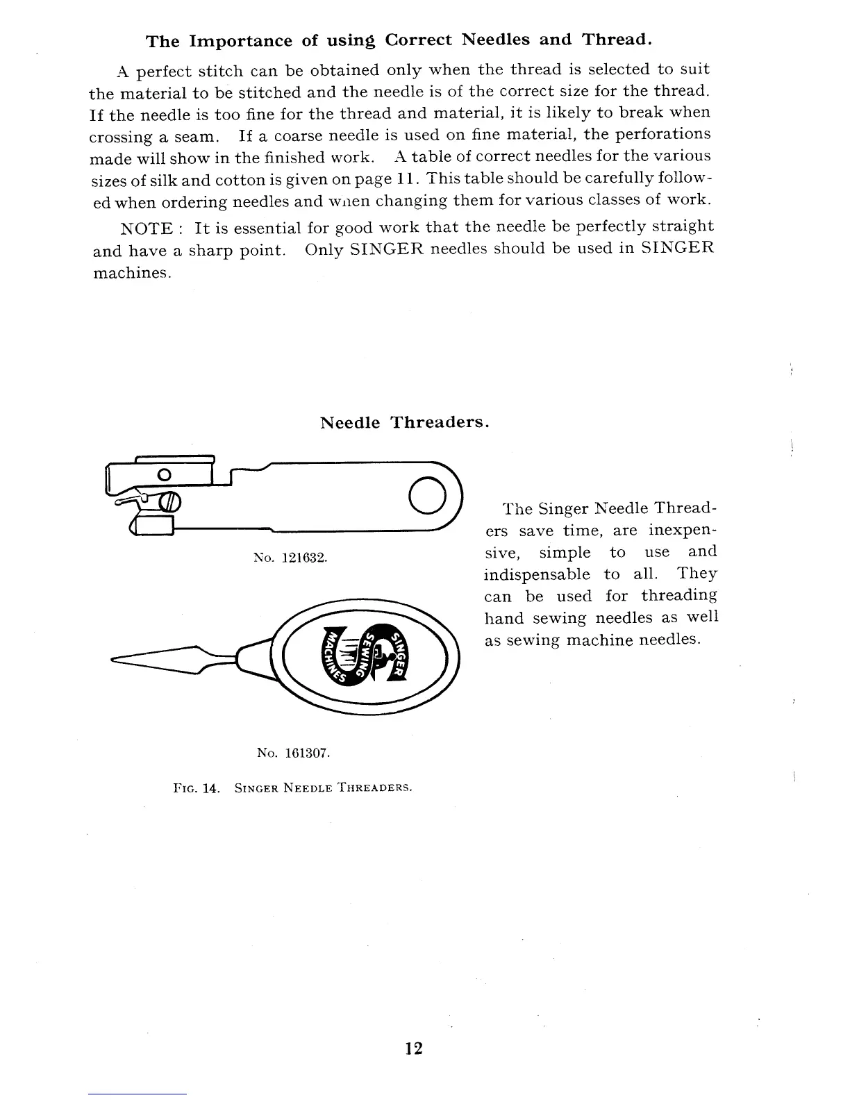 Singer 327K - Importance of Correct Needles and Thread; Needle Threaders
