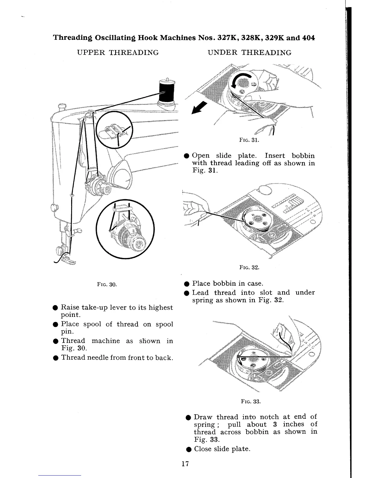 Singer 327K - Threading Oscillating Hook Machines (327 K, 328 K, 329 K, 404); Upper and Under Threading for 327 K, 328 K, 329 K, 404