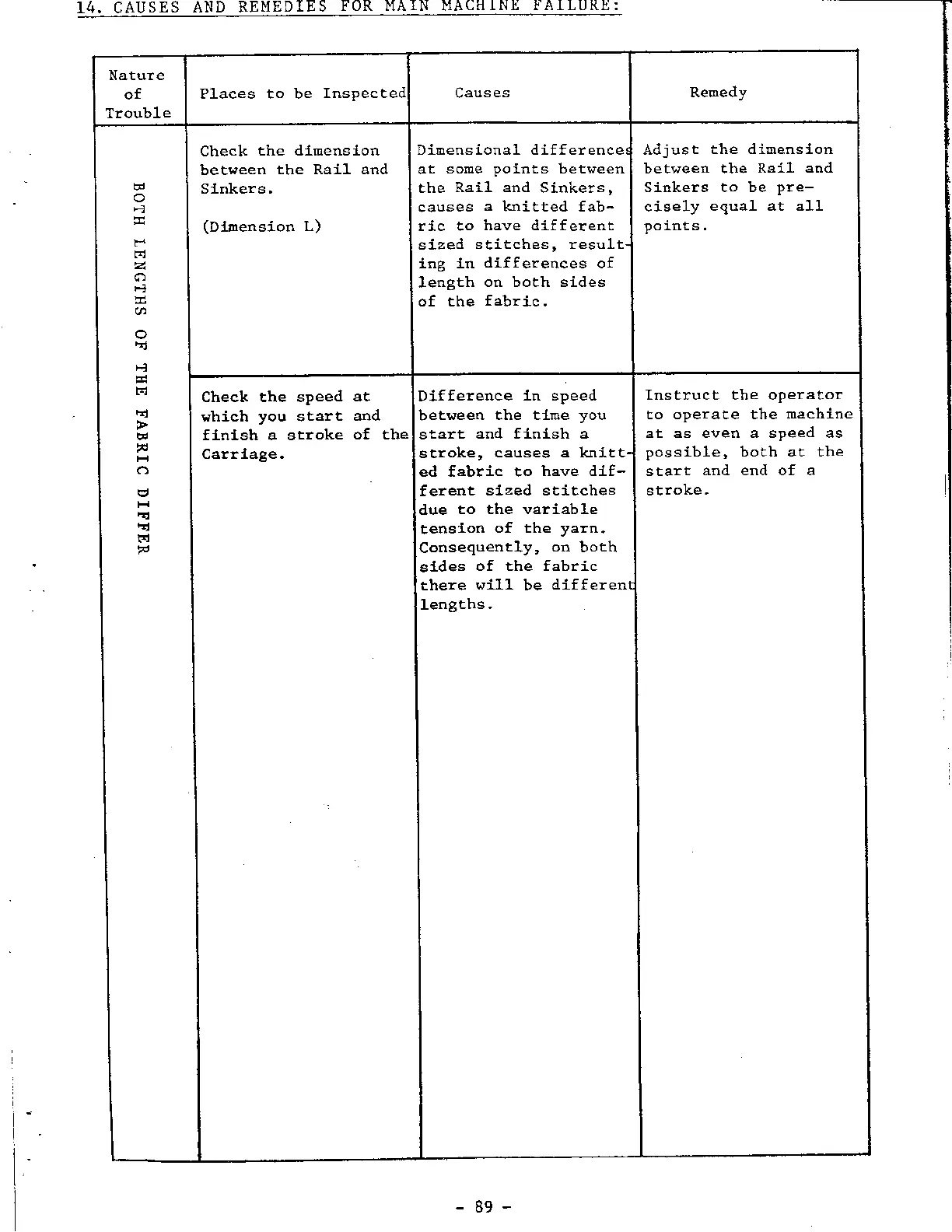 Singer 328 - CAUSES AND REMEDIES FOR MAIN MACHINE FAILURE; Both Lengths of Fabric Differ