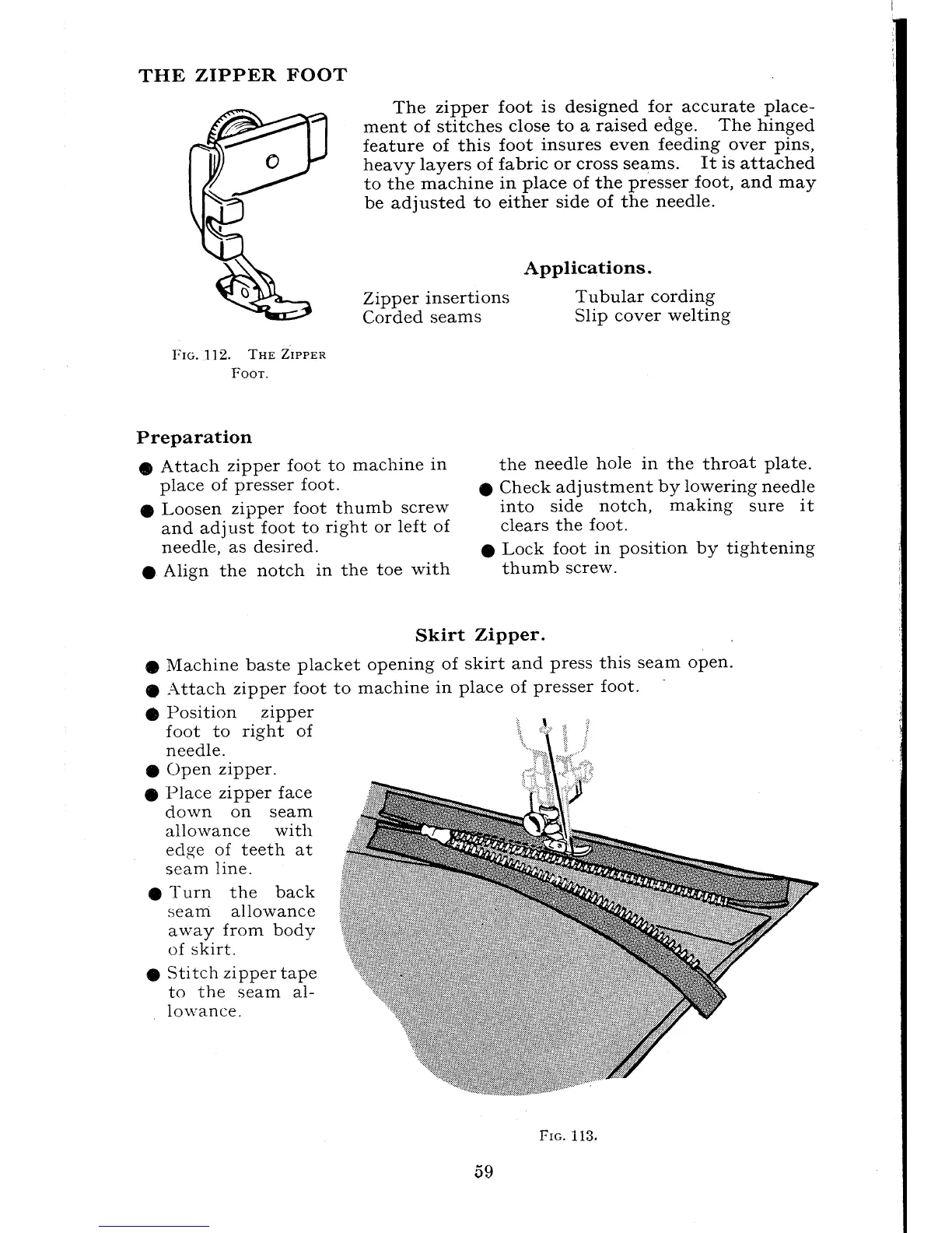 Singer 328K - Zipper and Corded Seam Attachments; Attaching and Using the Zipper Foot