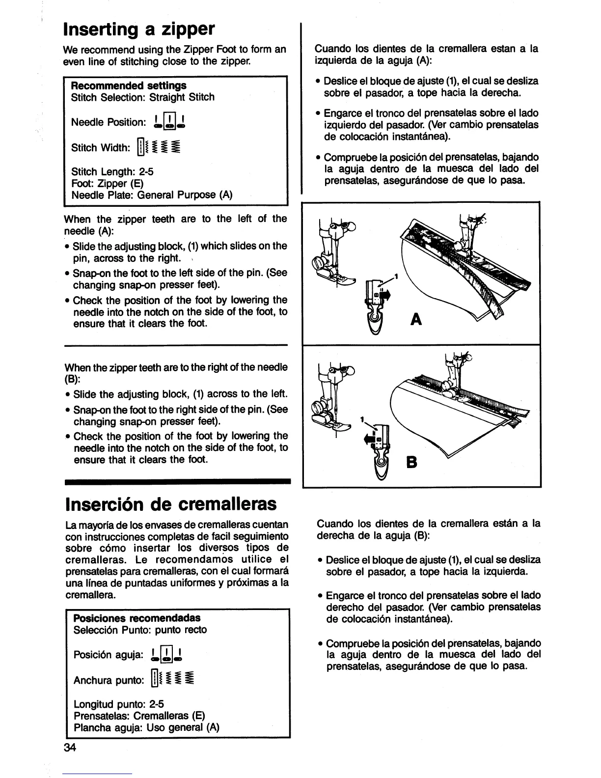Singer 3314 - INSERTING A ZIPPER; Zipper Insertion Settings and Method
