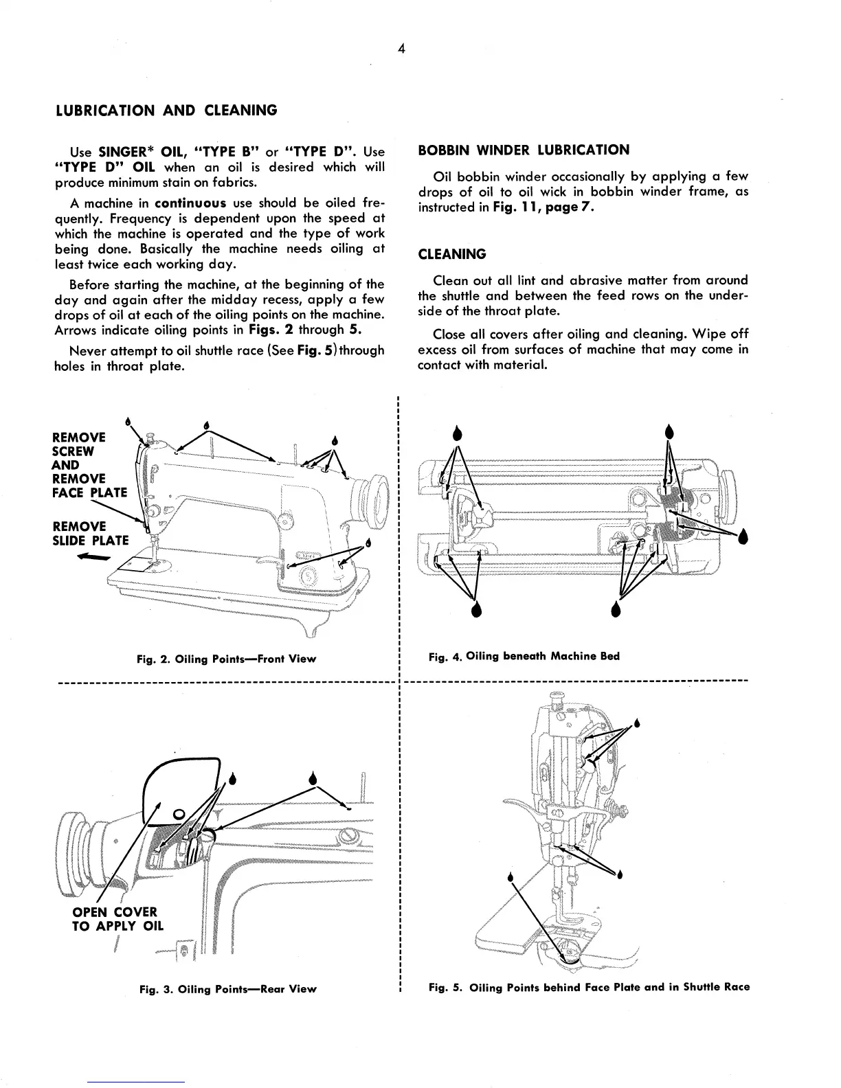 Singer 331K1 - Lubrication and Cleaning Procedures; Machine Oiling Points; Cleaning Internal Mechanisms