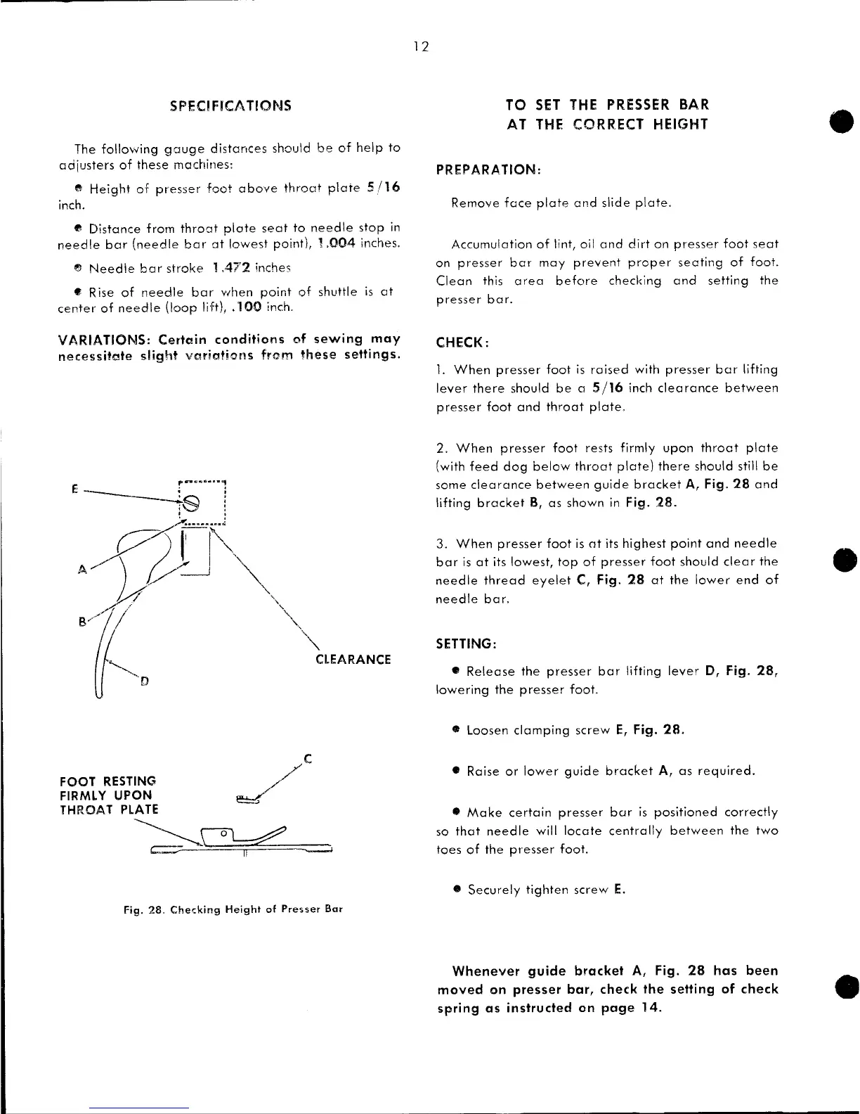 Singer 331K1 - Specifications; To Set the Presser Bar at the Correct Height; Preparation