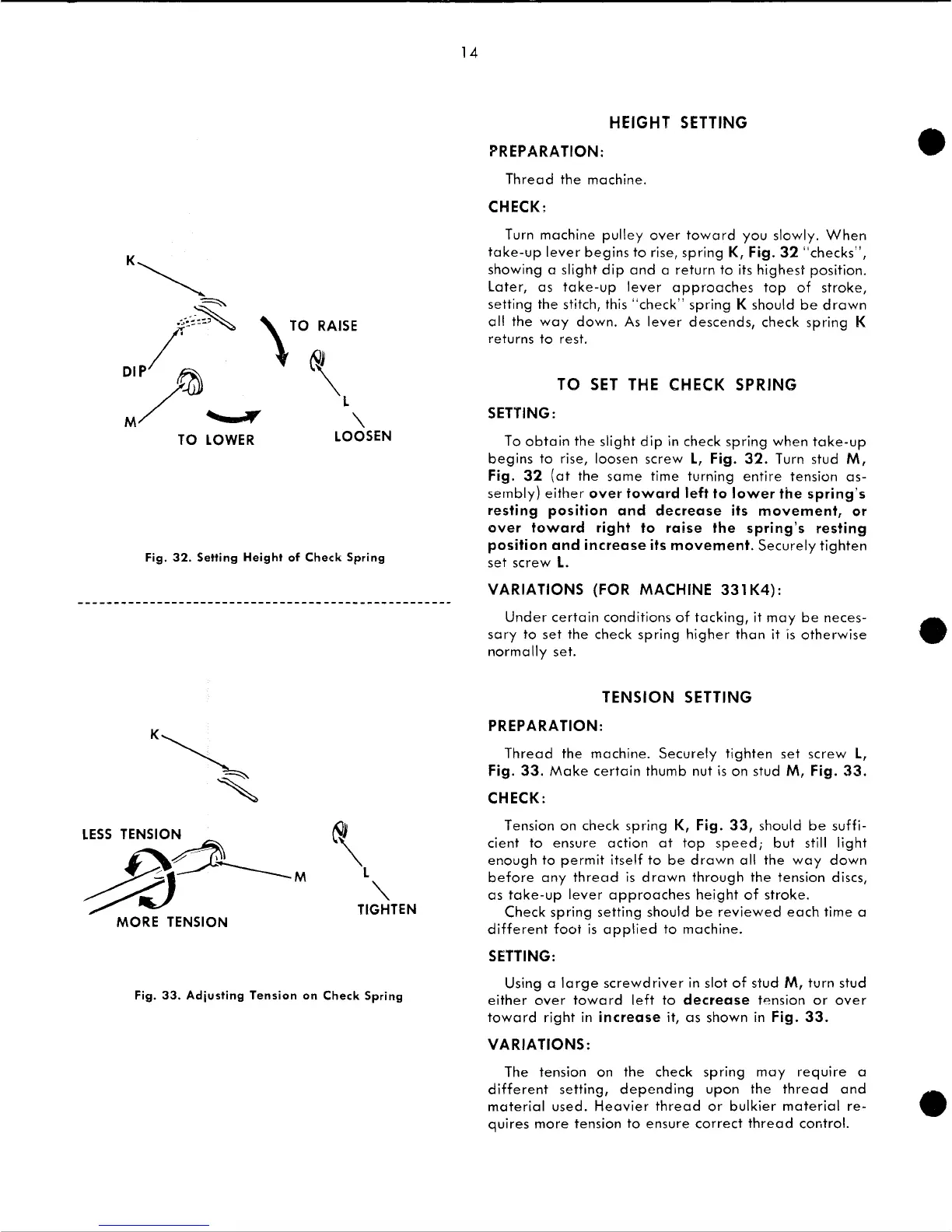 Singer 331K1 - Check Spring and Tension Adjustments; Setting Check Spring Height; Tension Setting (Check Spring)