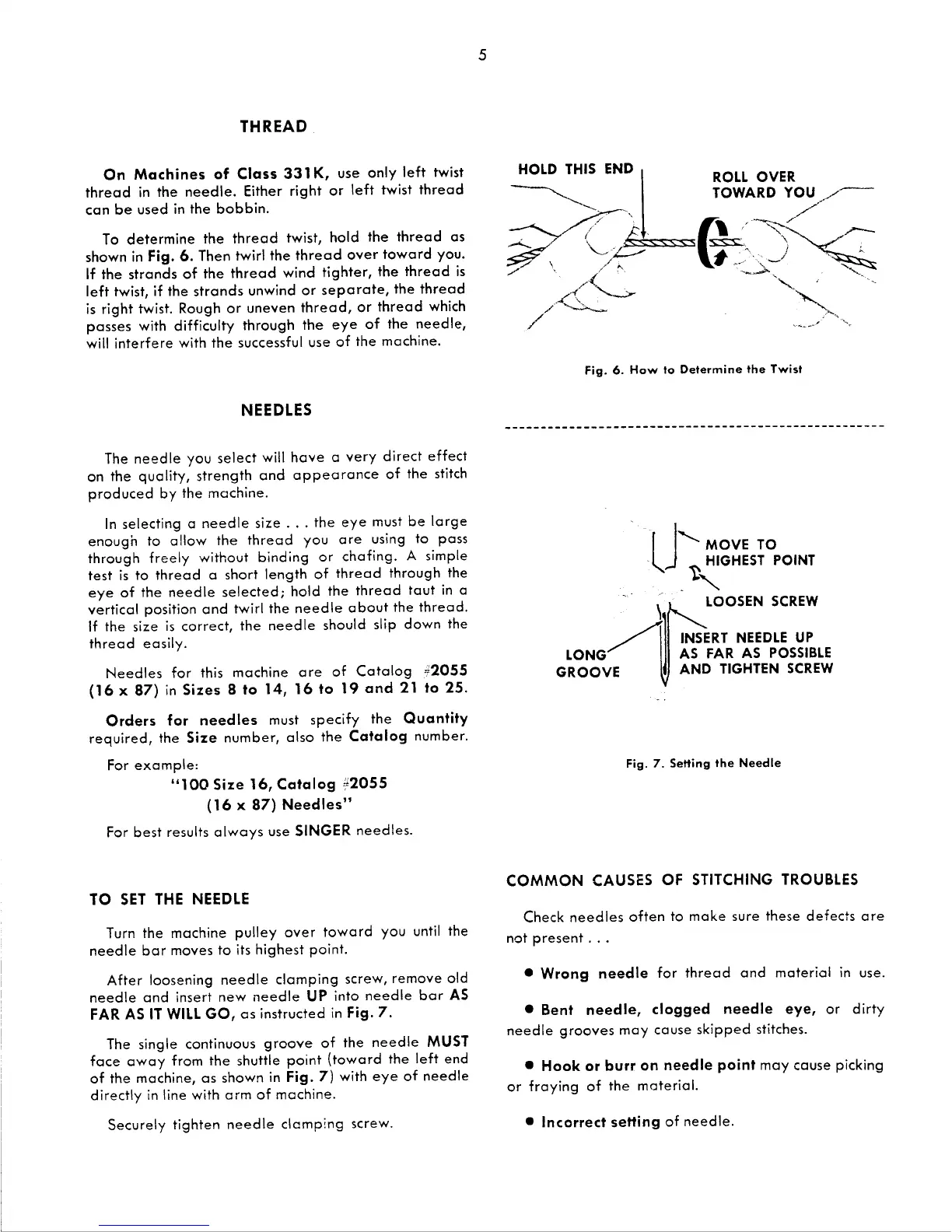 Singer 331K1 - Thread and Needle Management; Needle Selection and Setting; Common Stitching Troubles