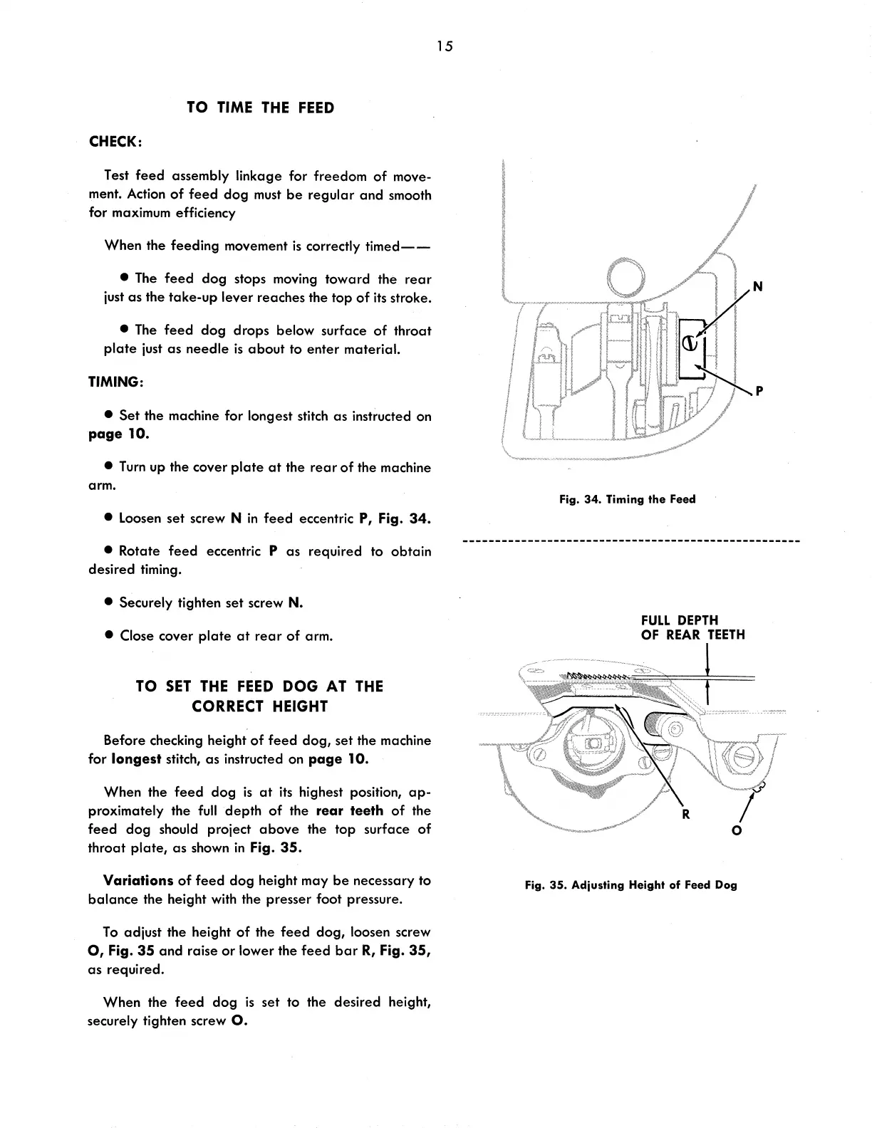 Singer 331K4 - Timing the Feed Mechanism; Setting Feed Dog Height