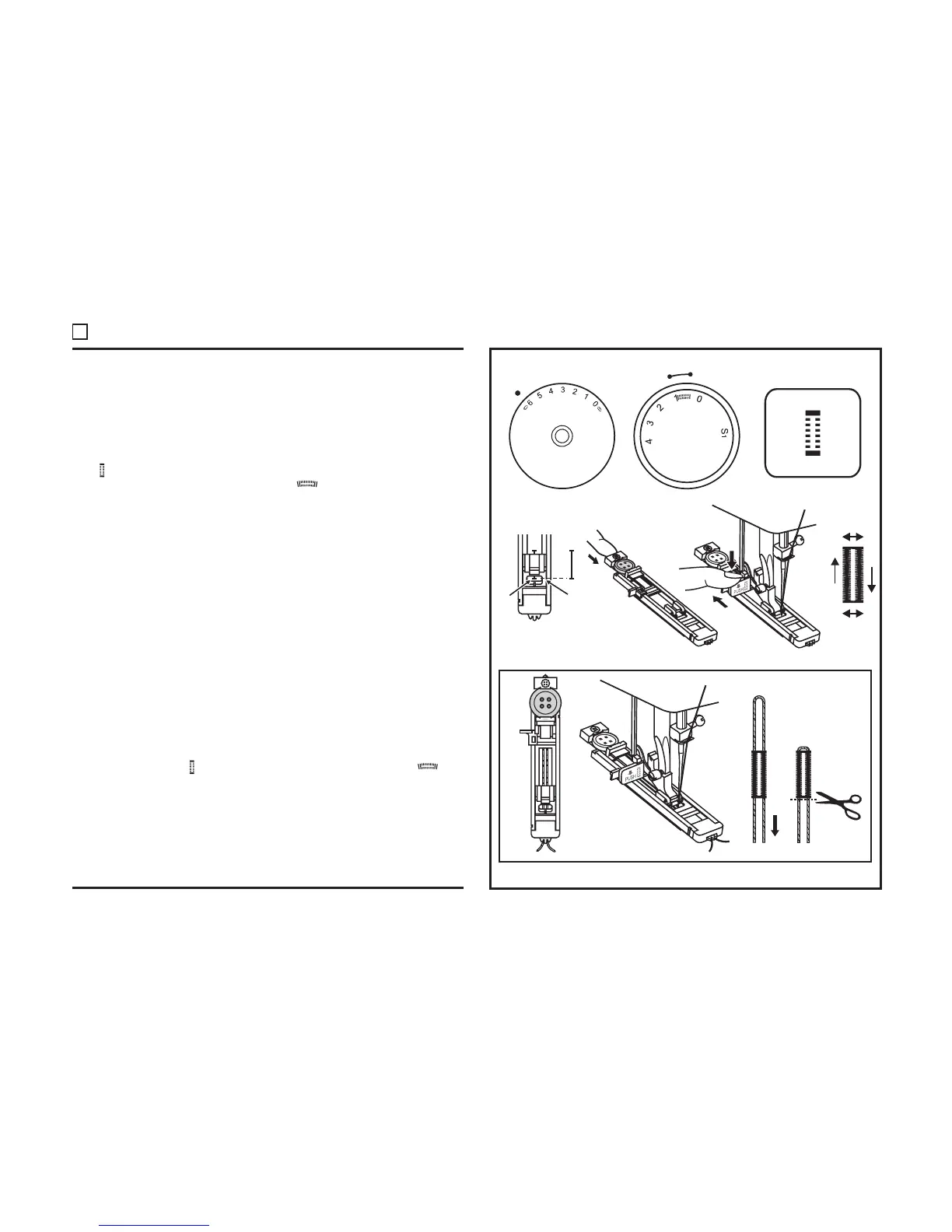 Stichwählrad auf " " ein. Stellen Sie das Stichlängenrad auf " " ein.