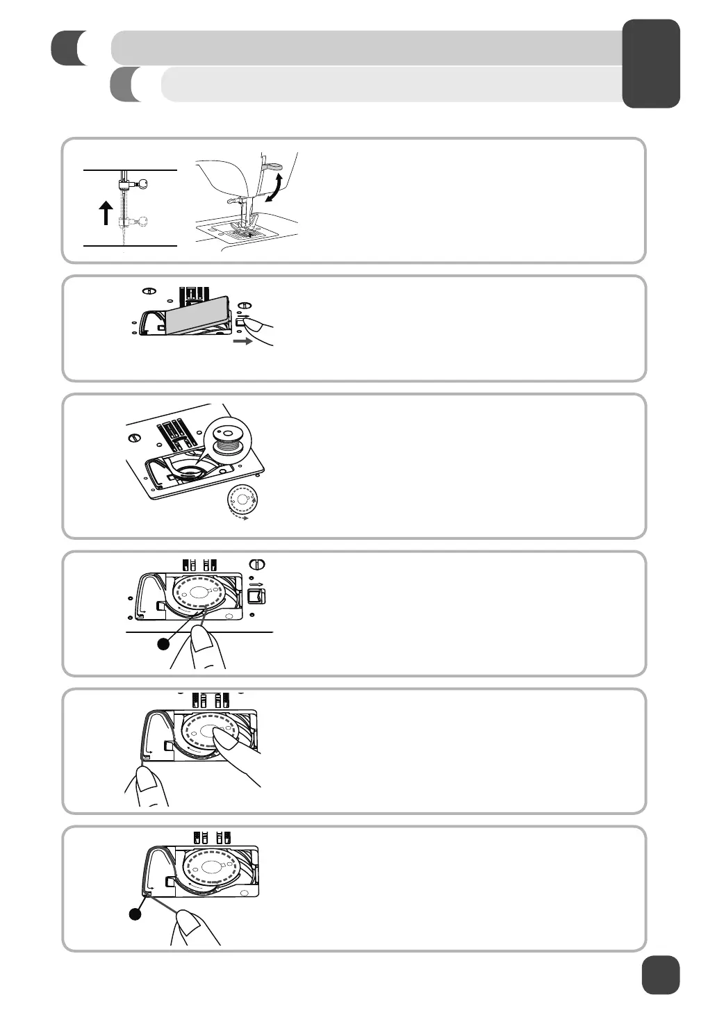 ⚠ Turn power switch off before inserting or removing the bobbin.
