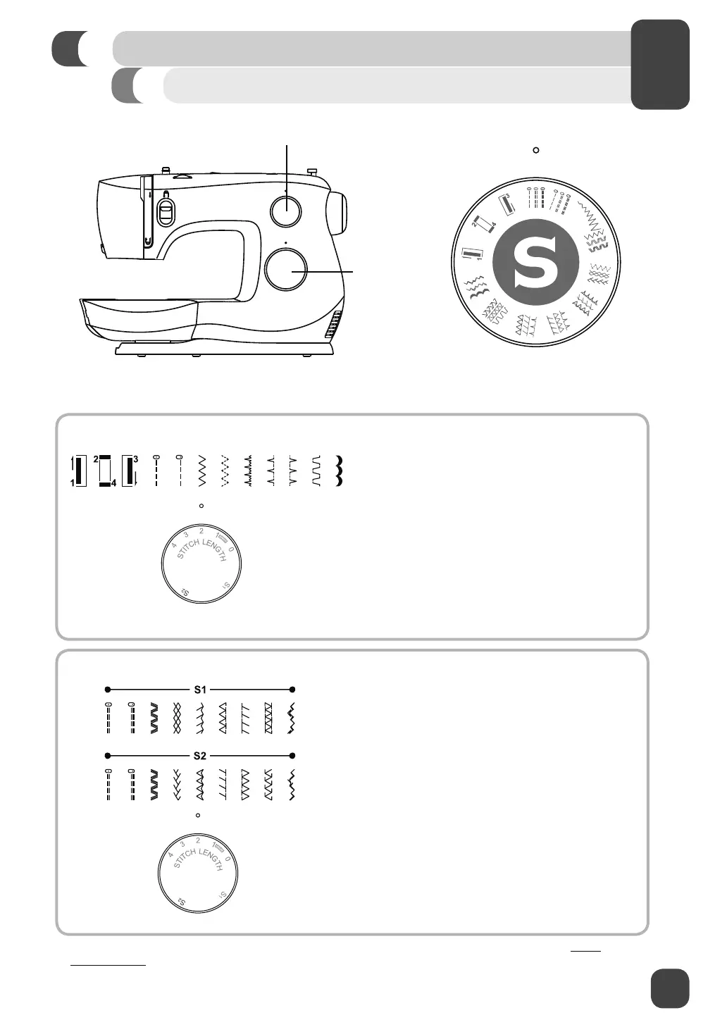 2. Set the Stitch Length Dial so that the S1 or S2