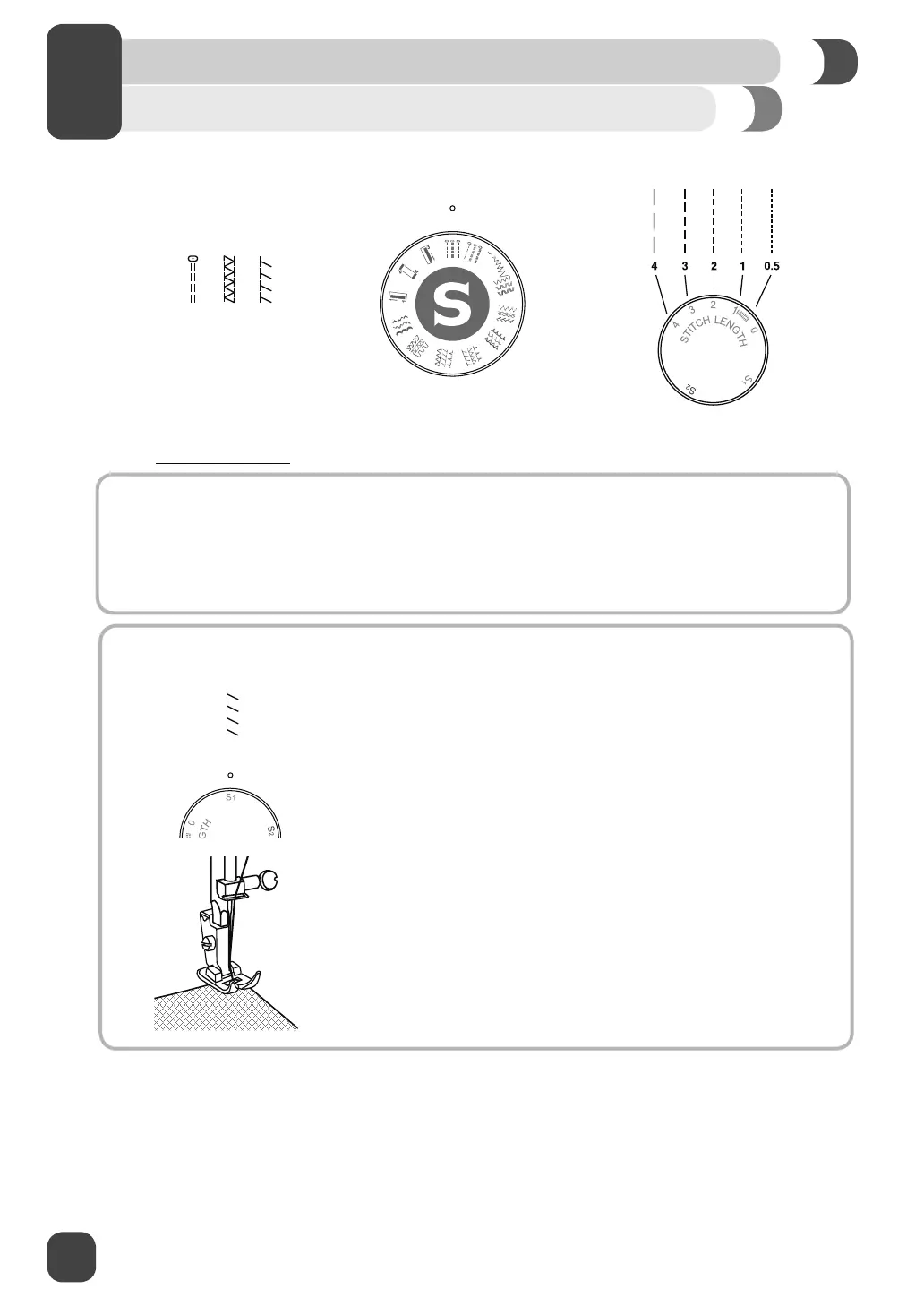 2. Set the Stitch Length Dial to the Stretch S1 setting for the blue stitches or S2 for the red stitches.