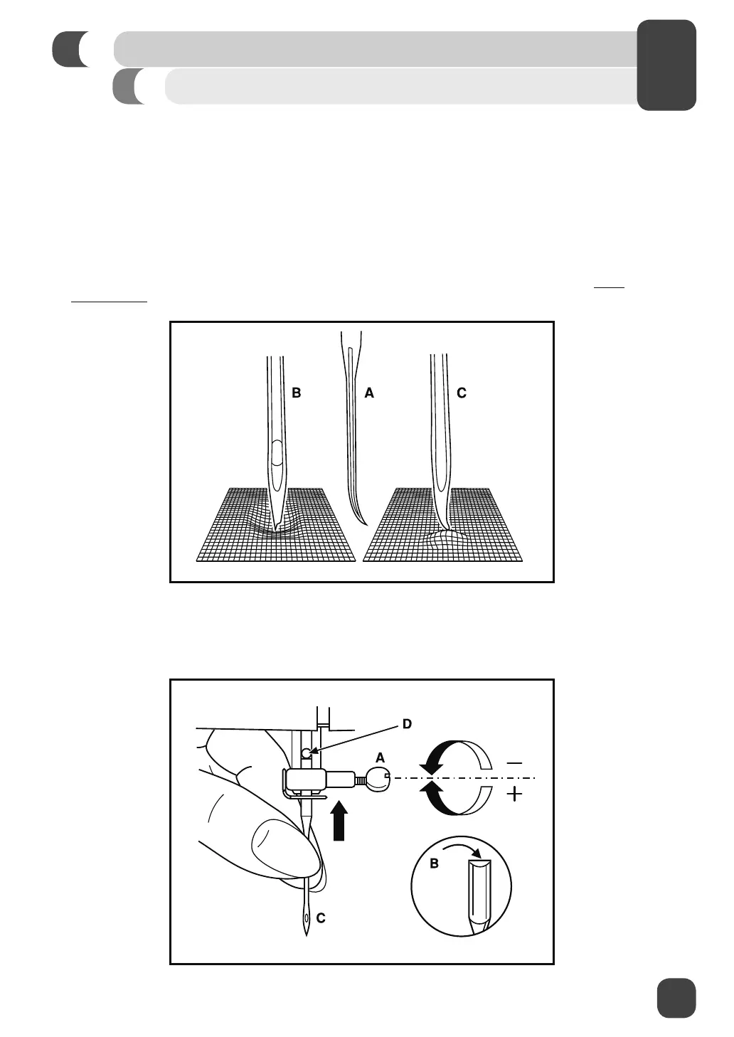 Si la aguja se dobla (A), la punta se daña (B) o la aguja se mella (C), debe remplazarla con una nueva