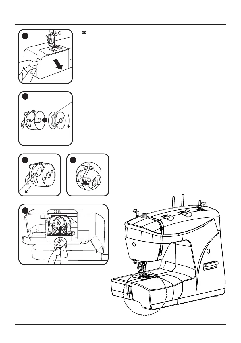 - Hold the bobbin case with one hand. Insert the bobbin so