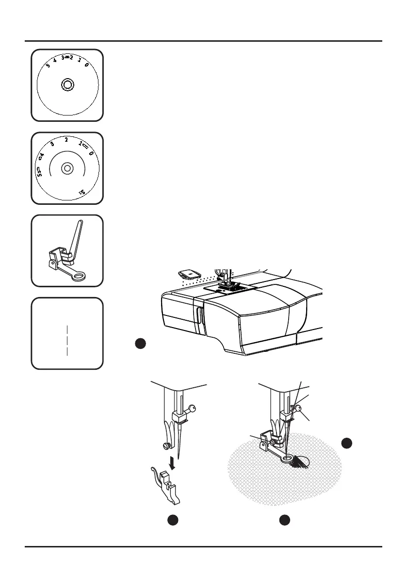 Set the machine as illustrated. Install the darning plate.(1)
