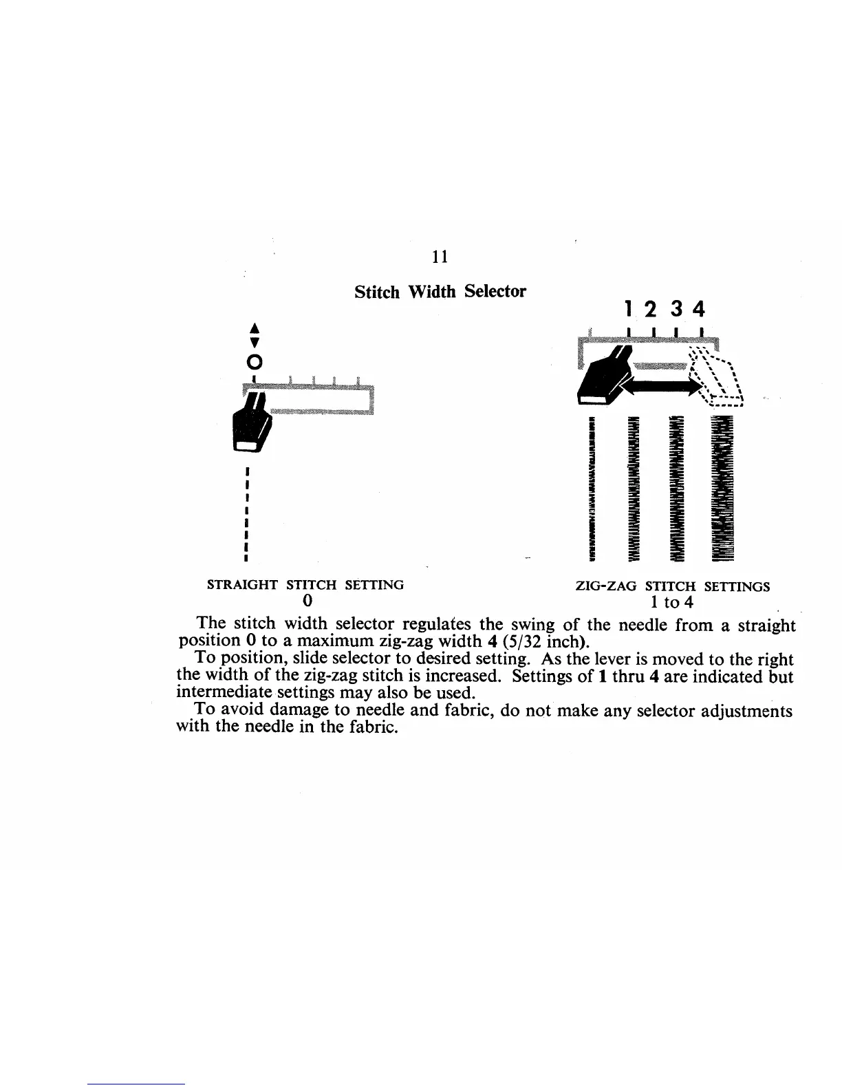 the width of the zig-zag stitch is increased. Settings of I thru 4 are indicated but