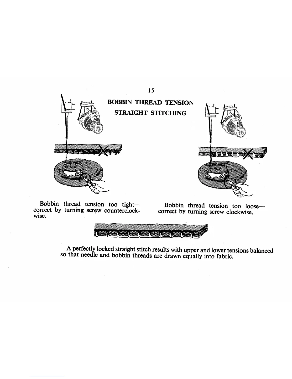 A perfectly locked straight stitch results with upper and lower tensions balanced
