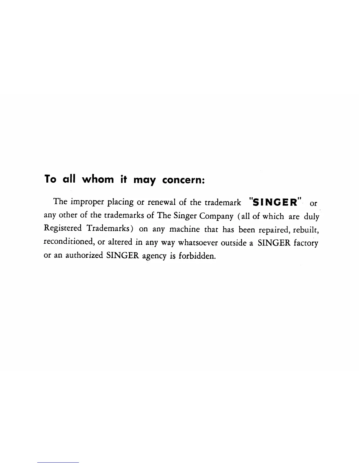 reconditioned, or altered in any way whatsoever outside a SINGER factory