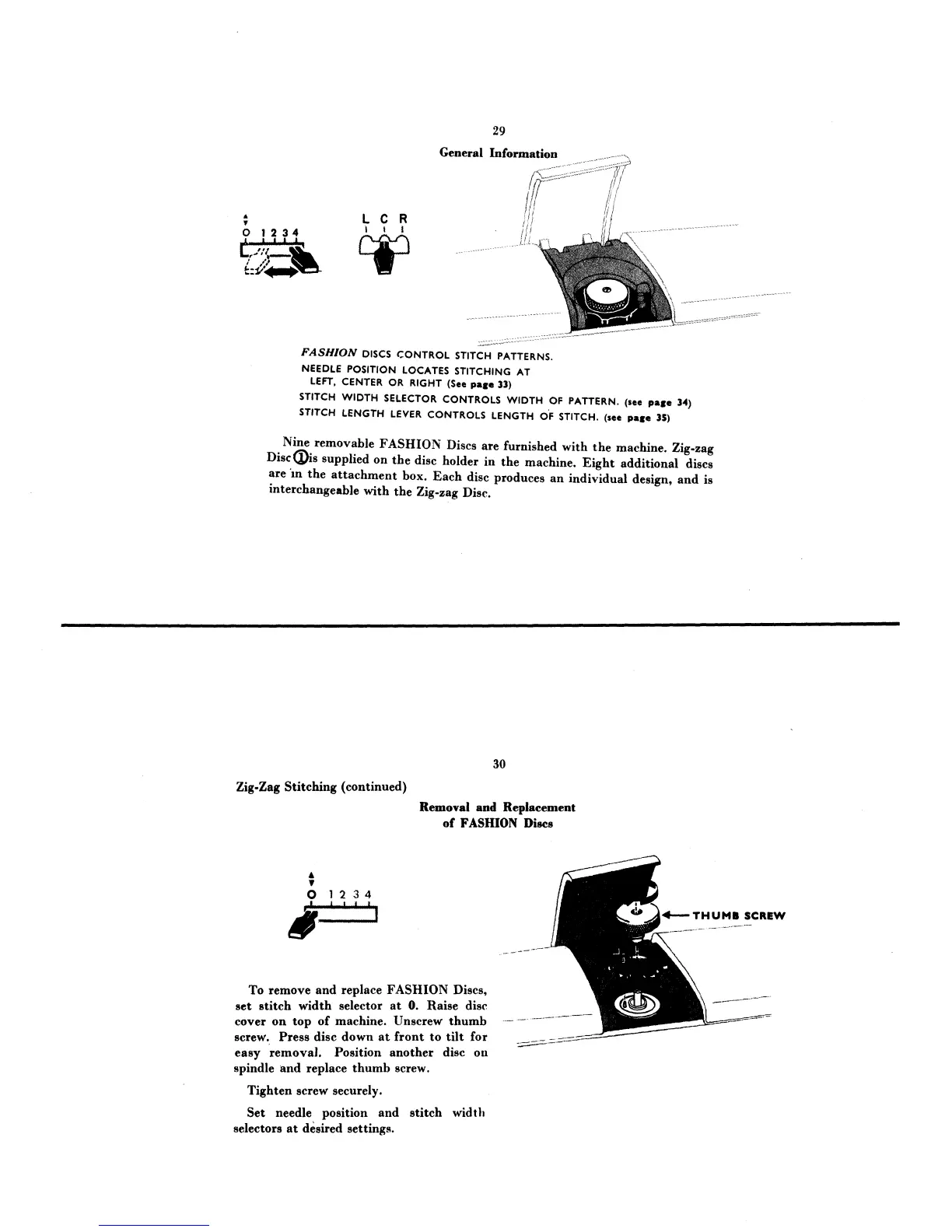 Singer 338 - Zig-Zag Stitching - General Information; Removal and Replacement of Fashion Discs