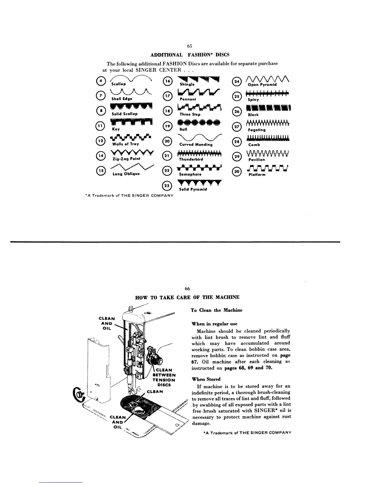 Singer 338 - Additional Fashion Discs; How to Take Care of the Machine; To Clean the Machine When in Regular Use; To Clean the Machine When Stored