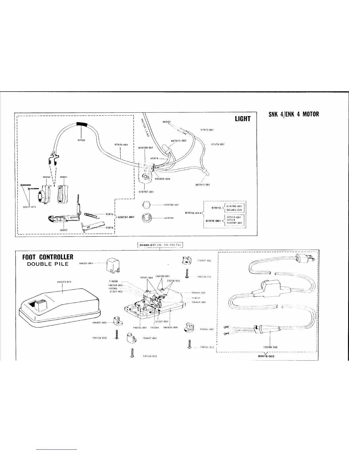 Singer 348K - Double Pile Controller Wiring; Double Pile Foot Controller Components