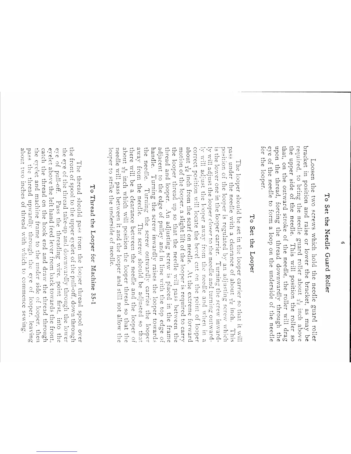 Singer 35-1 - Looper Setup and Threading; To Set the Needle Guard Roller; To Set the Looper; To Thread the Looper for Machine 35-1