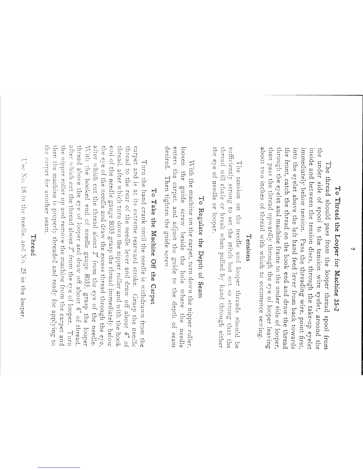 Singer 35-1 - Advanced Operation and Finishing; To Thread the Looper for Machine 35-2; To Regulate the Depth of Seam