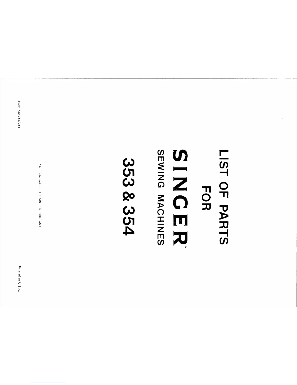 Singer 354 - Getting to Know Your Sewing Machine; Principal Parts; Getting Ready to Sew; Preliminary Steps
