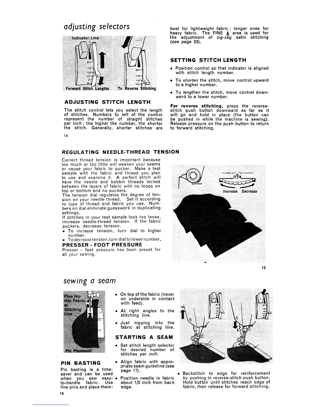 Singer 354 - Adjusting Selectors; Regulating Thread Tension; Sewing a Seam