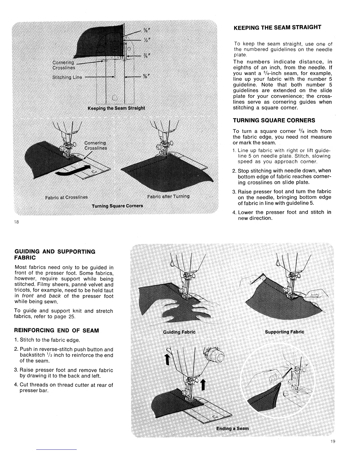 Singer 360 - Guiding and Supporting Fabric; Reinforcing End of Seam; Keeping the Seam Straight; Turning Square Corners