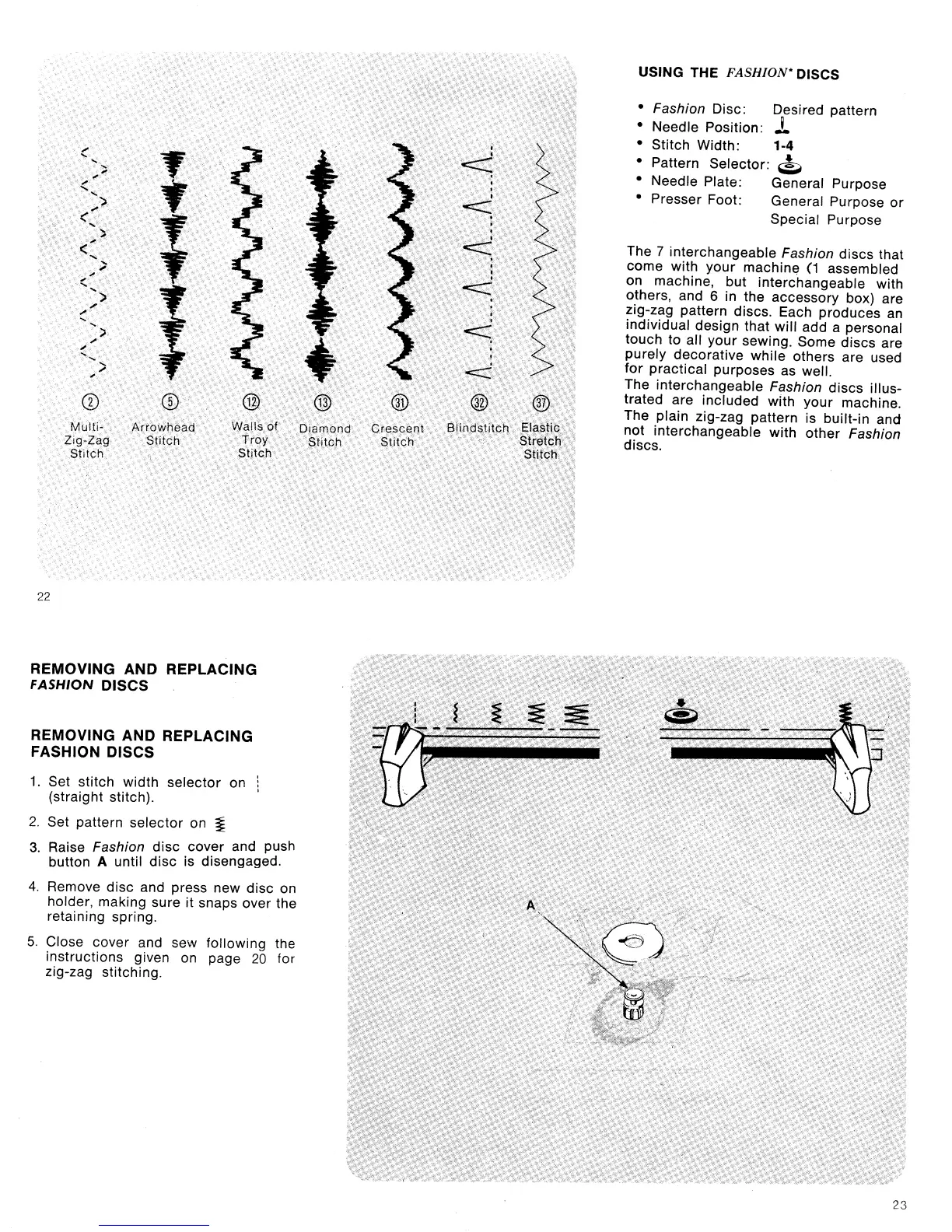 Singer 360 - Removing and Replacing Fashion Discs; Using the Fashion Discs