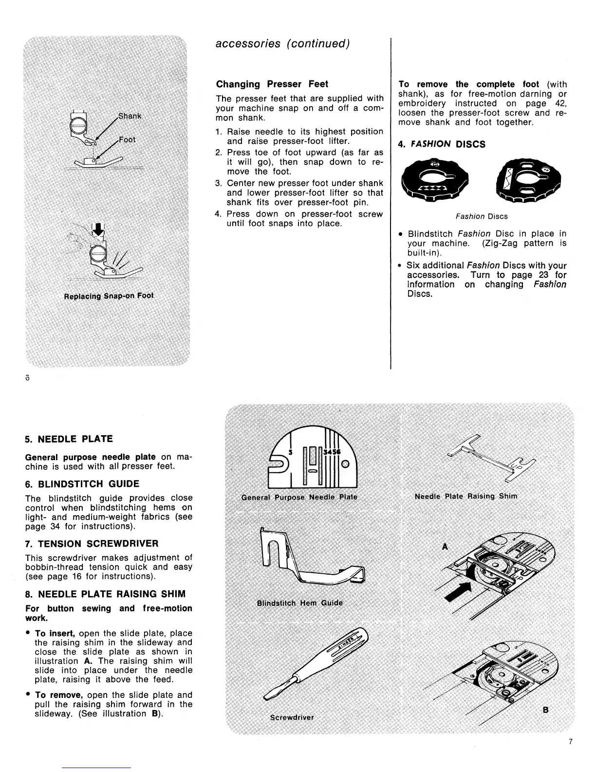 Singer 360 - Fashion Discs; Needle Plate; Blindstitch Guide; Needle Plate Raising Shim