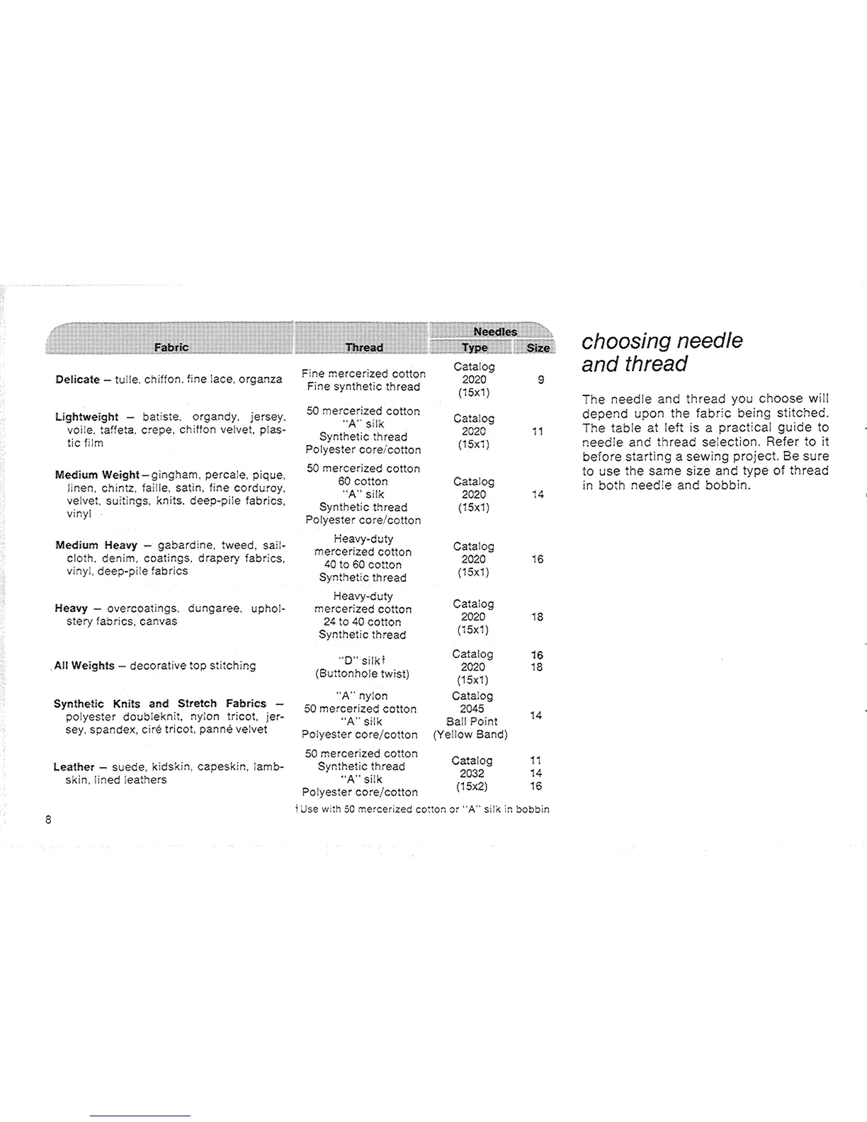 Singer 362 - Choosing Needle and Thread