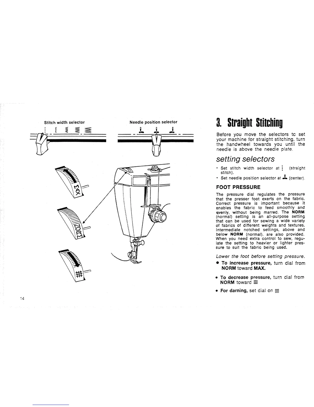 Singer 362 - Straight Stitching Operations; Setting Selectors and Presser Foot Pressure
